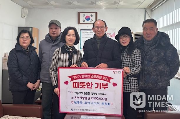 미담타임스 김교환 기자 | 부산 동래구 명륜동 행정복지센터는 지난 9일 희망지키미 후원회(회장 조치선)로부터 설 명절을 맞아 250만 원 상당의 온누리상품권을 전달받았다고 밝혔다.