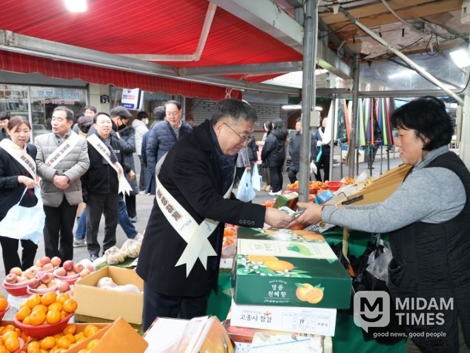 또한 효자시장에서는 ▲건축디자인과 직원들이 지역 농·축산물과 과일을 구입하며 전통시장 이용의 중요성을 알리고 상인들과 명절의 정을 나눴다.