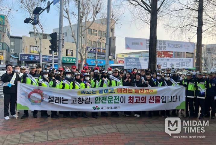미담타임스 김교환 기자 | 대구 동구청은 11일, 큰고개오거리 일원에서 설 명절을 앞두고 ‘설맞이 교통안전 캠페인’을 실시했다.