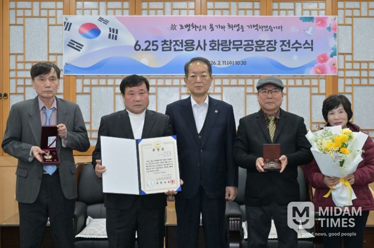 미담타임스 김준완 기자 | 울산 남구는 11일 6·25전쟁에 참전해 무공을 세운 故 조병화 중사의 유족에게 화랑무공훈장을 전수했다.