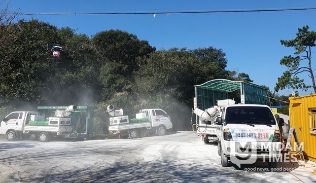 사체 처리는 침출수 유출과 토양 오염을 최소화하기 위해 FRP 통을 활용해 안전하게 마무리했으며 발생지 주변에는 소독 차량 7대를 투입해 집중 소독을 실시하고 있다.
