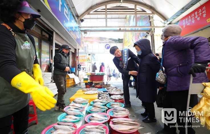 진병영 군수는 전통시장을 돌며 설 제수용품과 농수산물, 생활필수품 가격 동향을 살피고, 상인 및 군민들의 의견과 건의 사항을 청취했다.