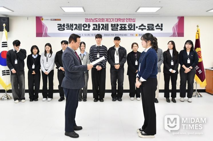한편, 경남도의회는 도내 대학과의 긴밀한 협력을 바탕으로 지역 인재들이 미래를 설계할 수 있도록 지원하기 위해 대학생 인턴십 사업을 지속해 나갈 방침이다.