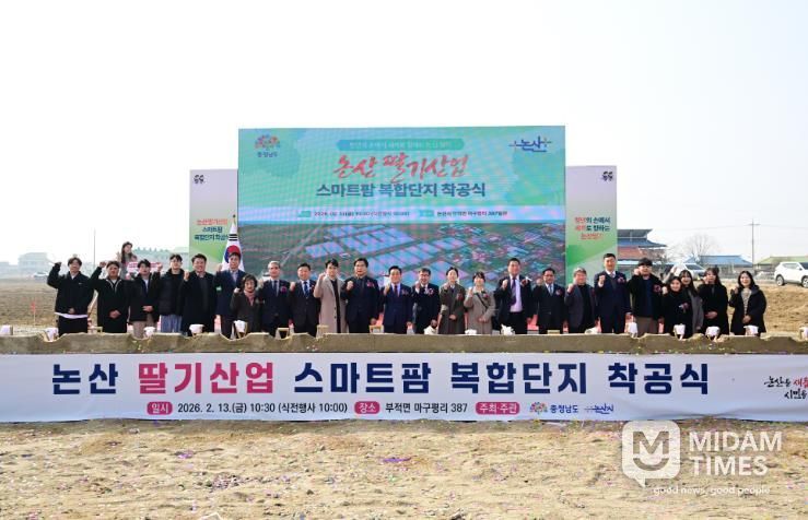 논산시(시장 백성현)는 13일 부적면 마구평리 일원에서‘논산 딸기산업 스마트팜 복합단지 조성사업 착공식’을 개최했다.