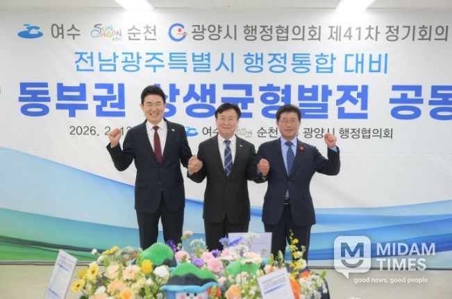 미담타임스 정인화 기자 | 순천시는 여수‧광양시와 함께 13일 순천대학교 70주년기념관에서 제41차 여수‧순천‧광양시 행정협의회 정기회의를 열고, 전남 동부권의 미래 경쟁력 확보를 위한 공동건의 3건을 공식 의결했다고 밝혔다.