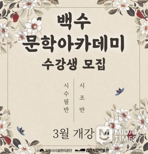 미담타임스 김준완 기자 | 김천시시설관리공단(이사장 김재광)은 오는 3월부터 백수문학관과 김천시립박물관이 연계한 교육 프로그램 ‘백수문학아카데미’를 운영한다.