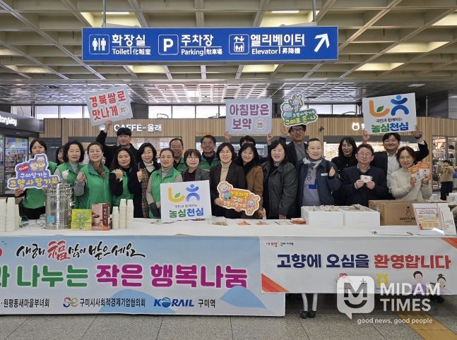 이날 현장에는 구미시를 비롯해 농협중앙회 구미시지부, 코레일 구미역, 원평동 남녀새마을지도자들이 함께했다. 참여자들은 구미 쌀로 만든 가래떡과 핫팩, 다과를 나누며 추운 날씨 속 귀성객들을 맞이했고, 이동 중 잠시 발걸음을 멈춘 시민들에게 제도 취지를 알렸다.