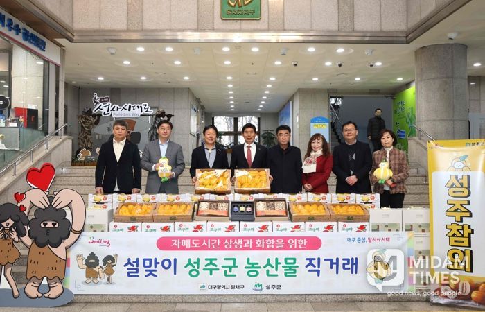 미담타임스 김교환 기자 | 대구 달서구는 설 명절을 맞아 자매도시인 성주군의 우수 농‧특산물을 저렴한 가격에 구매할 수 있는 『설맞이 농‧특산물 직거래 행사』를 추진했다.
