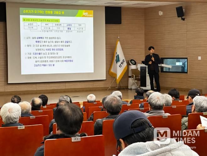 교육은 현장에서 바로 적용할 수 있는 실용 중심과 딸기, 사과, 단감, 쌀, 양파, 양봉, 염소, 한우 등 지역 주력 품목을 위주로 한 8개 맞춤형 과정으로 편성됐으며, 과정별로 2~3시간씩 심도 있게 진행됐다.