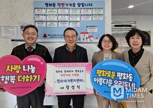 심미조 평화동장은 “착한가게 정기기부에 참여해 주신 장성식 센터장님께 깊이 감사드린다”며 “조성된 기금은 어려운 이웃들을 위해 쓰고, 앞으로도 복지 사각지대가 없도록 세심히 잘 살피겠다”고 밝혔다.