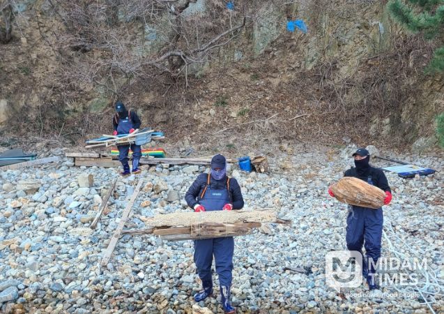 미담타임스 김준완 기자 | 울산 동구는 2월 20일 오전 대왕암공원 출렁다리 밑 해안 일대에서 해양쓰레기를 수거하는 해안 정비 활동을 했다.