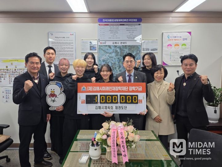 미담타임스 김교환 기자 | 김해시미래인재장학재단은 20일 김해시체육회 태권도단(회장 서동신)에서 장학기금 100만원을 기탁했다고 밝혔다.