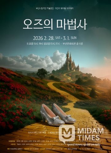부산시립극단이 2026년 특별공연으로 어린이 뮤지컬 아카데미 작품 '오즈의 마법사'를 선보인다. 이번 공연은 2월 28일부터 3월 1일까지 부산문화회관 중극장에서 개최되며, 토요일 15시·19시, 일요일 13시·17시 총 4회 공연으로 관객과 만난다.