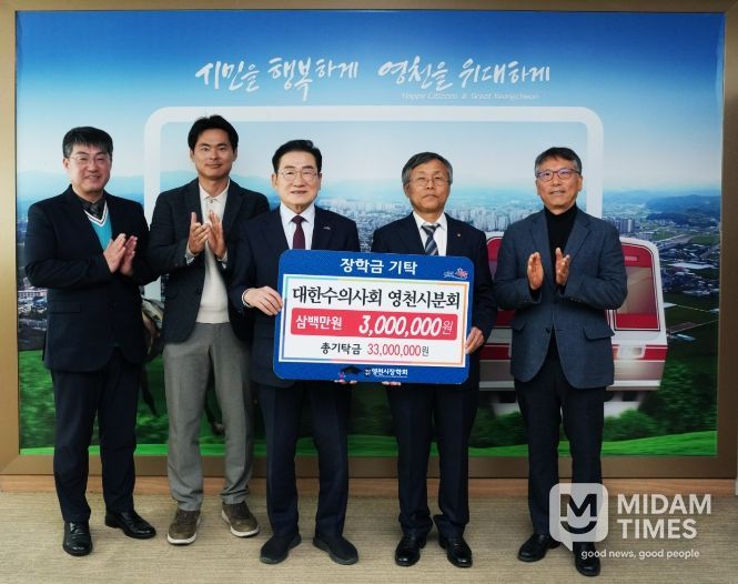 미담타임스 김준완 기자 | 영천시는 23일 대한수의사회 영천시분회에서 300만원, 박영배 전 금호읍 바르게살기위원회 위원장이 100만원의 장학금을 영천시장학회에 기탁했다고 밝혔다.