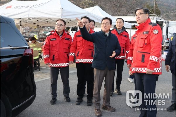 이어 박 지사는 마을 주민들이 대피해 있는 임시 구호 시설을 방문해 주민들을 위로하고 불편 사항을 점검했다. 박 지사는 구호 물품 지급 현황을 확인하며 대피 중인 주민들이 생활하는 데 어려움이 없는지 살폈다.