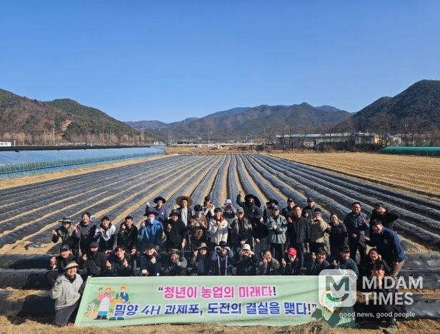 미담타임스 황명수 기자 | 밀양시 청년농업인 4-H연합회(회장 손영림)는 23일 청도면 인산리 일원 6,427㎡ 규모의 공동학습포에서 회원 40여 명이 참여한 가운데 본격적인 운영에 들어갔다.