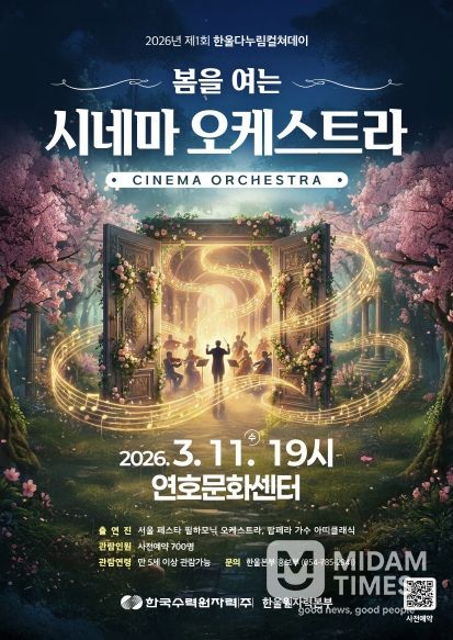 미담타임스 김준완 기자 | 한국수력원자력(주) 한울원자력본부는 3월 11일 19시 울진군 연호문화센터에서 제1회 한울다누림컬쳐데이 '봄을 여는 시네마 오케스트라'를 개최한다.