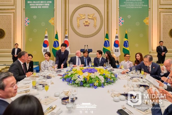 미담타임스 공한별 기자 | 이재명 대통령 부부는 23일 저녁, 국빈 방한 중인 룰라 다 시우바 대통령 부부와 브라질 대표단을 청와대 영빈관으로 초청해 만찬을 함께 했다.