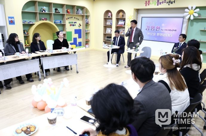 이후 김 지사는 아동 돌봄 거점 기능과 주민 참여 기반의 통합돌봄 체계 구축을 위해 지난해 운영을 시작한 ‘돌봄나눔플러스센터’를 방문해 아동·청소년 돌봄 관계자 10여 명과 함께 증평군 돌봄 정책의 방향에 대해 의견을 나눴다.