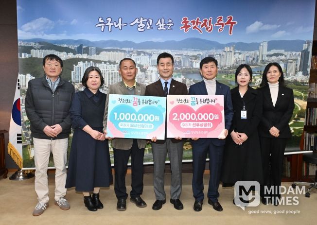미담타임스 김준완 기자 | 선우상공회(회장 김동명)와 모세산업개발(본부장 김광호)이 2월 24일 오후 4시 30분 중구청 구청장실을 찾아 성남청소년센터에 후원금 300만 원을 전달했다.