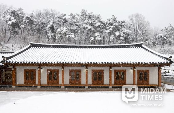 이날 오전부터 내리기 시작한 눈은 오후와 저녁까지 이어졌다. 전통 한옥 양식의 기와지붕과 마당, 주변 수목 위로 눈이 쌓이며 평소와 다른 모습이 연출됐다. 검은 기와 위에 쌓인 눈은 건물의 곡선을 더욱 또렷하게 드러냈다.