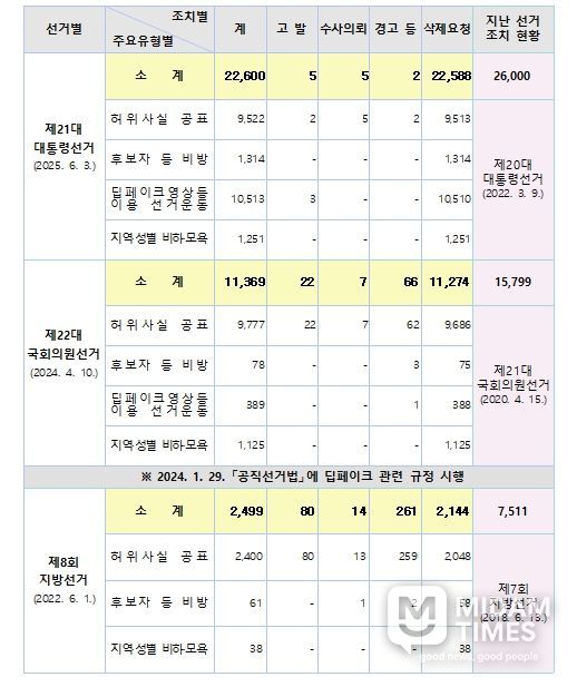 중앙선관위는 딥페이크 제작물이나 허위사실공표·비방 행위는 후보자에게 회복하기 어려운 피해를 줄 수 있고 유권자의 판단을 왜곡하여 선거결과에 영향을 미칠 수 있다면서, 깨끗한 사이버선거문화 조성을 위해 관계기관 등의 적극적인 협조를 요청했다.
