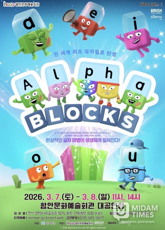 미담타임스 황명수 기자 | 함안군은 오는 3월 7일부터 8일까지 이틀간 오전 11시와 오후 2시, 모두 4회에 걸쳐 가족뮤지컬 '알파블록스'를 함안문화예술회관 대공연장에서 공연한다고 26일 밝혔다.