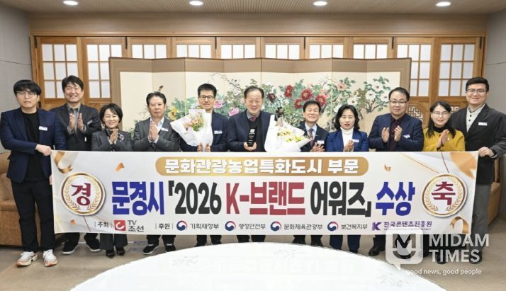 미담타임스 김준완 기자 | 문경시는 '2026 K-브랜드 어워즈'에서‘대한민국을 선도하는 명품도시’로서 공로를 인정받아 '문화관광농업특화도시' 부문 수상 지자체에 최종 선정됐다