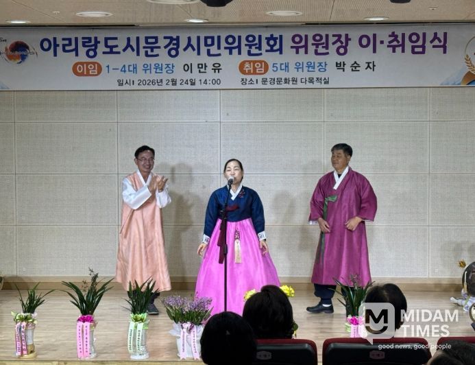 미담타임스 김준완 기자 | 아리랑도시문경시민위원회는 지난 24일 오후 2시 문경문화원 1층 다목적실에서 위원장 이·취임식을 성황리에 개최했다.