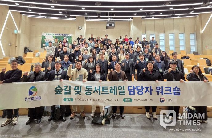 미담타임스 김준완 기자 | 산림청은 2월 26일부터 27일까지 충청북도 괴산군에서 동서트레일의 성공적인 완성과 운영 체계 구축을 위해 전국 5개 시도 및 21개 시·군·구 담당 공무원 등 100여 명이 참석하는 ‘2026 동서트레일 담당자 워크숍’을 개최한다고 밝혔다.