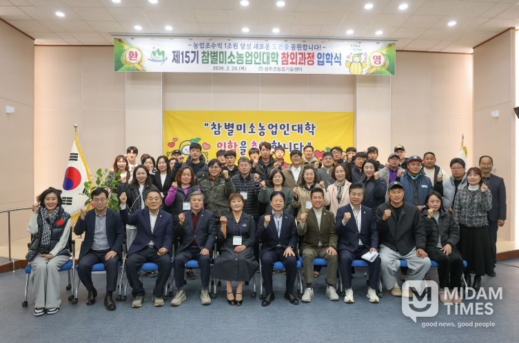 미담타임스 김준완 기자 | 성주군 농업기술센터는 2월 26일 센터 대강당에서 교육생이 참석한 가운데 농업·농촌을 선도하는 전문 농업인 양성을 위한‘2026년 제15기 참별미소농업인대학 참외과정 입학식’을 개최했다.
