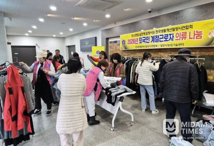 미담타임스 황명수 기자 | 한국생활개선밀양시연합회(회장 안화영)는 27일 밀양시농업기술센터 농업인교육관에서 2024년부터 3년째 이어오고 있는 외국인 계절 근로자를 위한 ‘사랑의 의류 나눔 행사’를 개최했다.