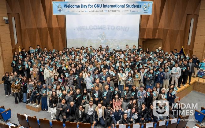 미담타임스 황명수 기자 | 경상국립대학교는 2026학년도 1학기에 외국인 유학생 244명이 입학했다고 밝혔다. 경상국립대학교 국제처는 2월 27일 오후 GNU국제관 파이어니어 오디토리엄에서 ‘2026학년도 1학기 외국인 유학생 신입생 오리엔테이션’을 개최했다. 행사에는 권진회 총장과 오재신 국제처장을 비롯해 외국인 유학생, 유학생 도우미(GNU Buddy), 교직원 등 320여 명이 참석했다.
