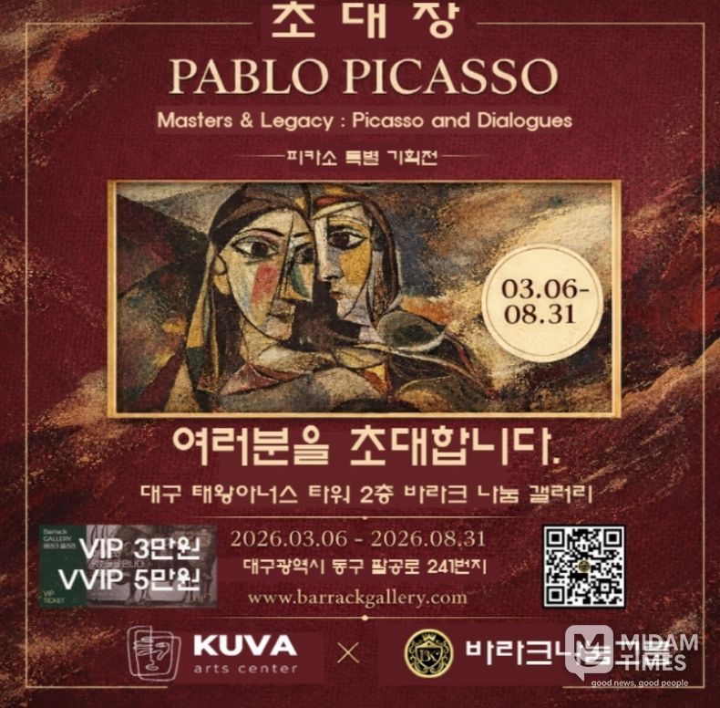 미담타임스 김준완 기자 | 한 도시의 전시장이 한 시대의 미술사를 온전히 담아내는 일은 결코 가벼운 과제가 아니다. 2026년 3월 6일부터 8월 31일까지 대구 동구 봉무동 바라크나눔갤러리에서 열리는 피카소 인 대구 피카소와 전설의 거장들 특별전은 이러한 학술적 무게를 정면으로 다루며 지역 문화계에 새로운 이정표를 제시한다. 이번 전시는 단순히 세계적 명화를 나열하여 선보이는 단발성 행사를 넘어 20세기 미술이 형성해온 사유의 구조를 하나의 정교한 큐레이토리얼 맥락 안에서 재구성하려는 기획이다.