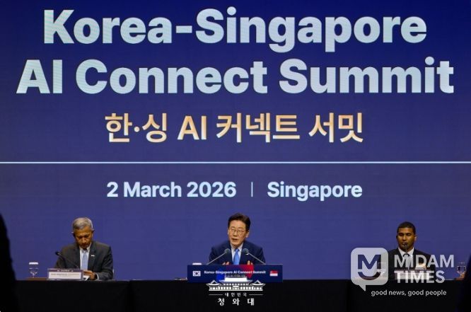미담타임스 공한별 기자 | 싱가포르를 국빈 방문한 이재명 대통령은 2일(현지시간) 오후 '한·싱 AI 커넥트 서밋'에 참석해 "대한민국과 싱가포르의 동반성장으로 AI 산업의 흐름을 선도하는 'AI 대항해 시대'를 열어갈 것"이라고 밝혔다.
