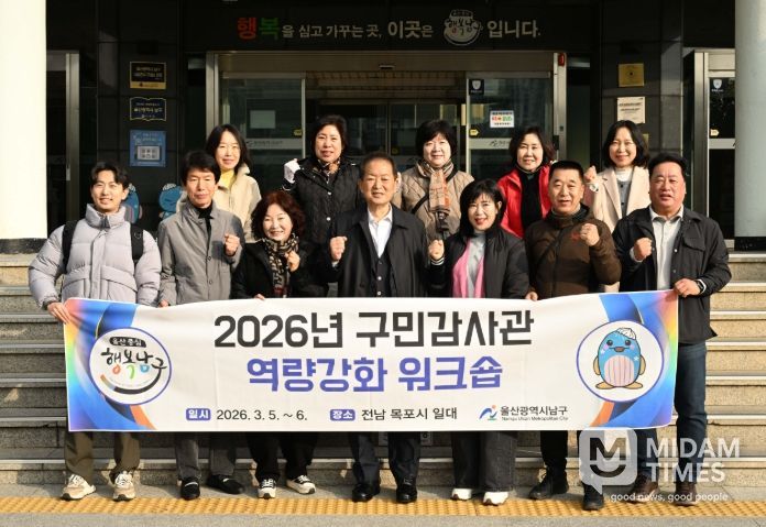미담타임스 김준완 기자 | 울산 남구는 구정 감시의 내실을 기하고 공직사회의 청렴도를 높이기 위해 전라남도 목포시 일원에서 ‘2026년 구민감사관 역량 강화 워크숍’을 실시했다.