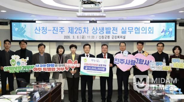 이승화 산청군수는 “산청과 진주는 행정·경제·문화 등 다방면에서 긴밀히 소통해 온 동반자 관계”라며 “앞으로도 내실 있는 공동사업 추진을 통해 지역 간 상생 발전을 더욱 강화해 나가겠다”고 밝혔다.