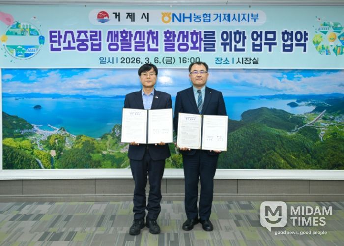미담타임스 김준완 기자 | 거제시는 3월 6일 시청에서 NH농협 거제시지부와 탄소중립 실천 문화 확산을 위한 업무협약을 체결했다고 밝혔다.