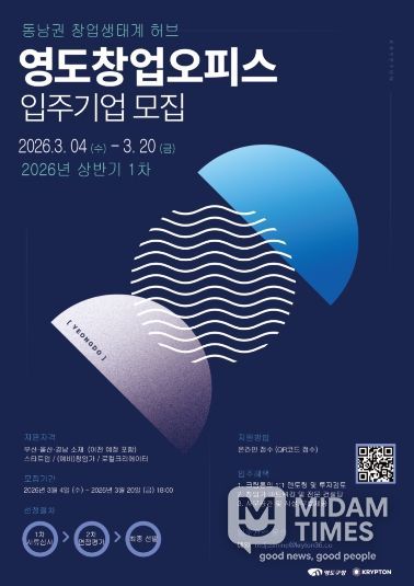 미담타임스 남혜영 기자 | 부산 영도구는 지역 내 유망한 예비 창업가를 발굴하고 기존 창업자의 역량을 강화하기 위해 '2026년 영도 창업오피스 입주기업(팀)'을 오는 3월 20일까지 모집한다고 밝혔다.