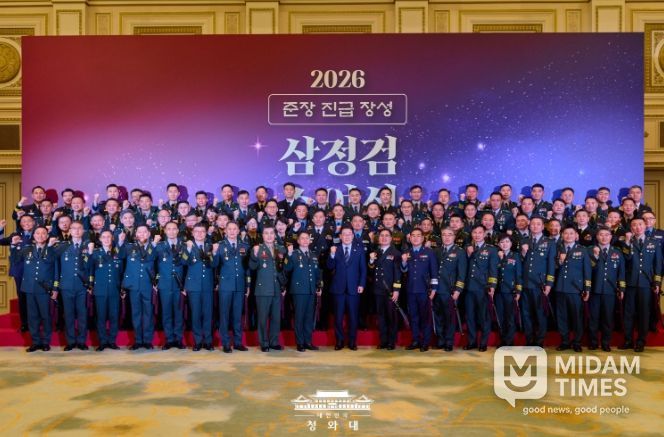 미담타임스 공한별 기자 | 이재명 대통령은 오늘 오후 청와대 영빈관에서 개최된 ‘26년 준장 진급자 삼정검 수여식 행사에 참석해 총 77명의 준장 진급자들에게 삼정검을 수여했다.