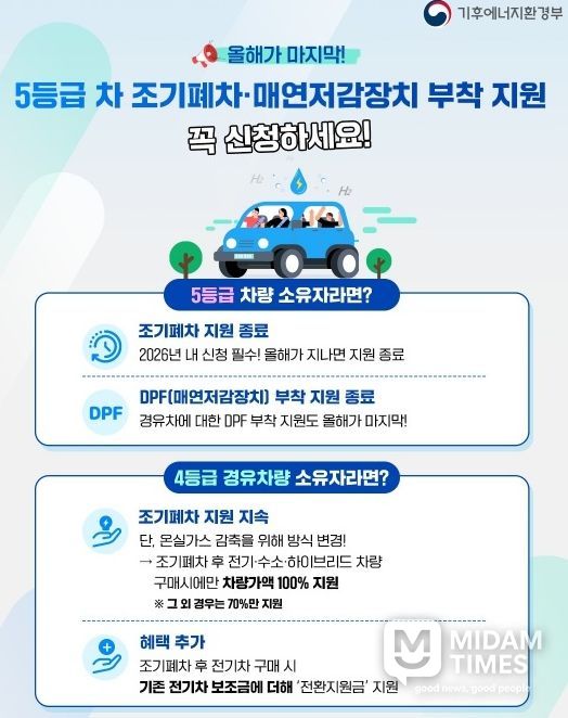 신청은 3월 5일부터 예산 소진 시까지 가능하며, 자동차배출가스 종합전산시스템을 통한 온라인 신청 또는 사천시청 환경보호과에 방문·우편신청을 통해 접수할 수 있다.