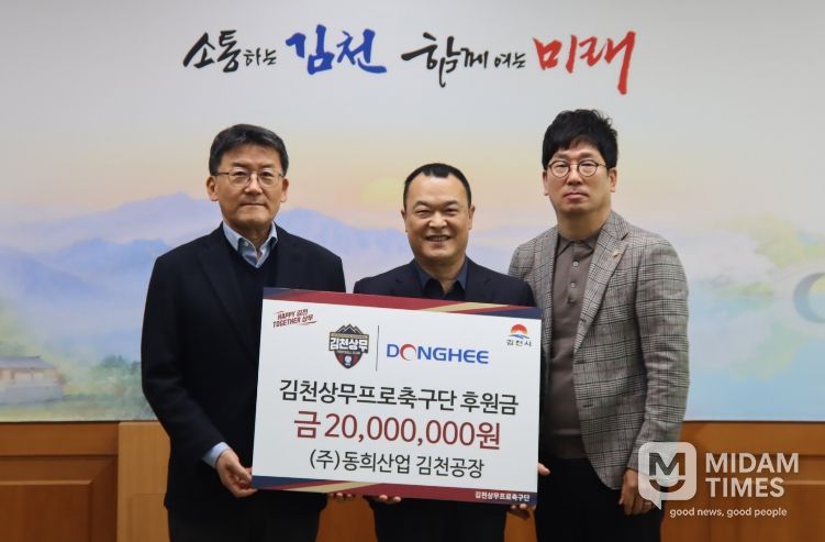 동희산업은 김천시 어모면 산업단지에 위치한 김천공장을 인연으로 지난 2022년부터 김천상무 후원을 시작했다. 이어 올해까지 5년 연속 후원을 이어가며 지역 스포츠 발전과 구단 운영에 힘을 보태고 있다.