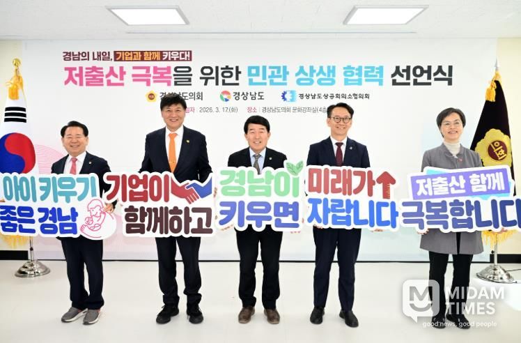 미담타임스 공한별 기자 | 경상남도 저출산 대응 특별위원회는 17일 경상남도의회에서 경상남도, 경남상공회의소협의회와 함께 '저출산 극복을 위한 민관 상생 협력 선언식'을 개최했다고 밝혔다.