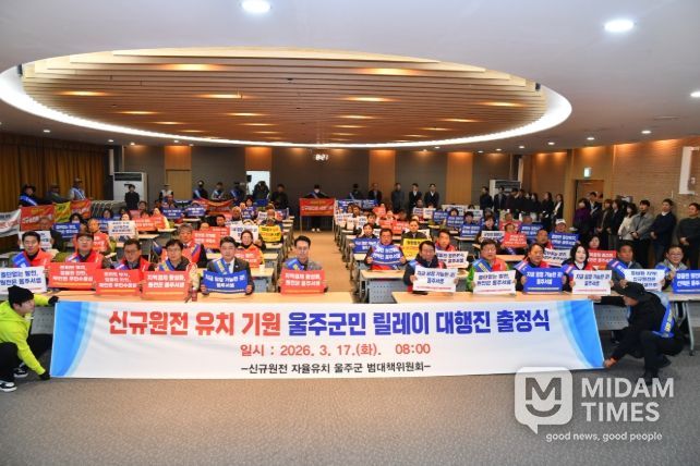 미담타임스 김준완 기자 | 울산 울주군이 17일 ‘신규 원전 유치 기원 울주군민 릴레이 대행진’을 행사를 열고, 한국수력원자력에 원자력발전소 건설 후보부지 유치신청서를 공식 제출했다.