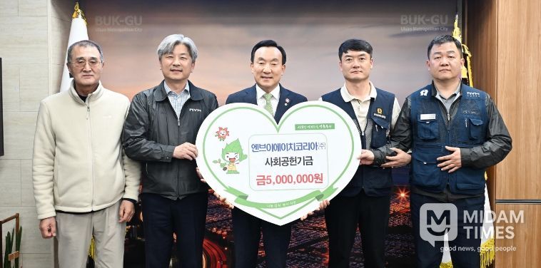 미담타임스 김준완 기자 | 엔브이에이치코리아(주)는 3월 24일 북구청장실에서 지역사회 나눔 실천을 위한 사회공헌기금 전달식을 가졌다. 이날 전달식에는 북구청장과 엔브이에이치코리아 임직원, 북구자원봉사센터 관계자 등이 참석한 가운데 사회공헌기금 500만원을 북구자원봉사센터에 전달했다.
