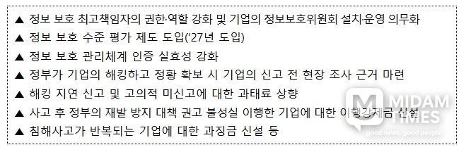 정보통신망법 개정안은 사이버 침해사고 예방부터 대응까지 전 범위를 강화하는 것을 골자로 한다. 기업의 정보 보호 역량을 높이고 관련 정보 보호 인증 체계를 강화하여 침해사고 발생을 더 효과적으로 예방할 수 있게 되며, 사고 발생이 의심되면 정부의 조사가 가능해져 사이버보안 침해사고에 더욱 빠르게 대응할 수 있게 된다. 무엇보다 침해사고로 인한 국민의 피해를 방지하기 위해서 기업의 사회적, 법적 책임을 강화하는 내용을 담고 있다.
