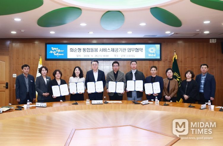미담타임스 조혜리 기자 | 화순군은 3월 25일 ‘화순형 의료·요양 통합돌봄 서비스 제공기관 협약식’을 개최하고, 돌봄이 필요한 군민에게 맞춤형 통합서비스를 제공하기 위한 민·관 협력체계를 구축했다고 밝혔다.