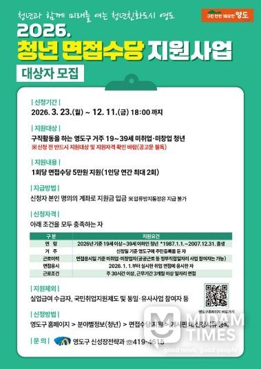 미담타임스 남혜영 기자 | 부산 영도구가 미취업 청년들의 구직 활동을 실질적으로 돕기 위해 ‘2026년 청년 면접수당 지원사업’을 시행한다.