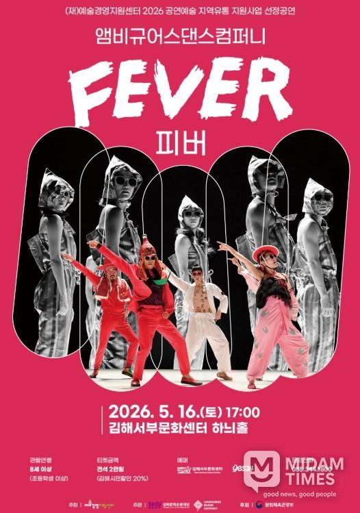 미담타임스 황명수 기자 | (재)김해문화관광재단 김해서부문화센터에서 오는 5월 16일 오후 5시 문화체육관광부가 후원하고 (재)예술경영지원센터가 주최하는 ‘2026 공연예술 지역유통지원사업’의 일환으로, 현대무용단체 앰비규어스댄스컴퍼니의 대표작 ‘FEVER(피버)’가 공연된다.