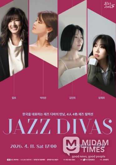 미담타임스 전해찬 기자 | 서구문화회관은 4월 11일 오후 5시 서구문화회관 공연장에서 한국을 대표하는 재즈 디바 말로, 박라온, 김민희, 임채희를 초청하여'JAZZ DIVAS'콘서트를 개최한다.